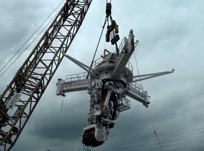 “天融号”是国内电网基建工程首台竖向掘进机,也是华南地区最大直径下沉式竖井掘进机,开挖直径达15.1米。该设备凭借深度集成下沉式掘进工艺与管片外拼施工技术,实现掘进、排渣、支护三大核心工序一体化同步推进,精准适配高压线下施工限制与复杂地质条件,成功破解大直径竖井施工效率低、安全防护弱等行业痛点。这一硬核装备不仅填补了华南地区大直径下沉式竖井掘进装备应用的空白,更开创了国内电网基建工程应用竖向掘进机的先河,是高端装备制造与电网能源基建深度融合的重要创新成果。